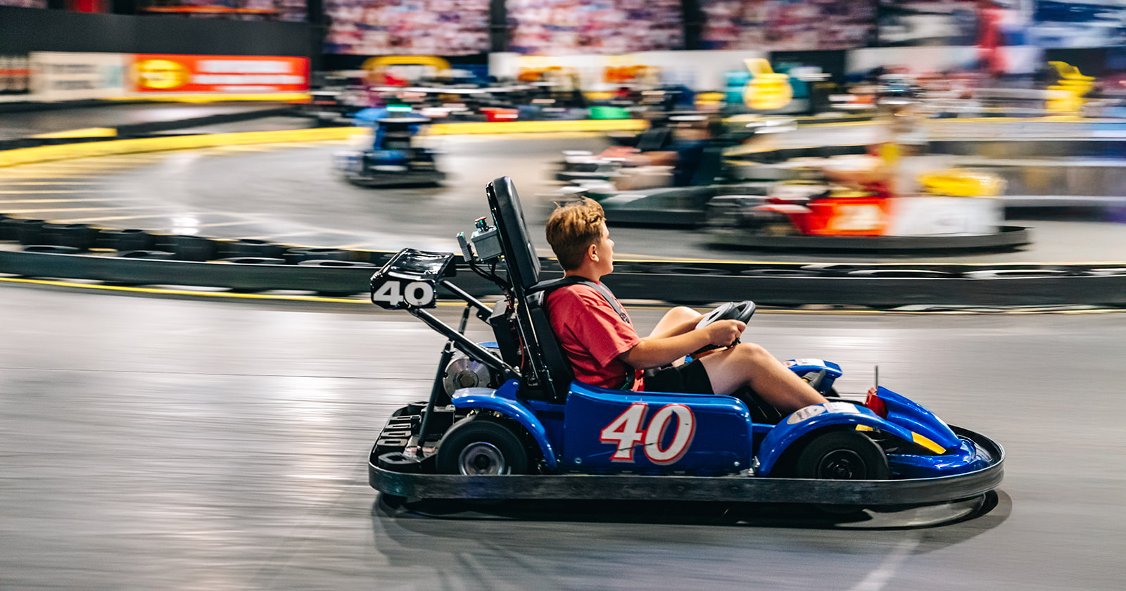 Ride Go Karts rain or shine! Test your racing skills on our indoor electric go kart track.